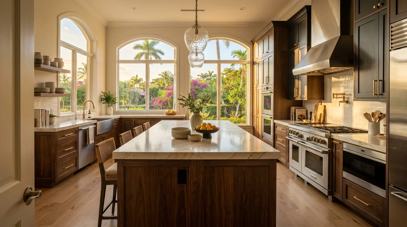Hurricane codes add complexity here that doesn't exist elsewhere. Cabinet mounting must meet specific wind load requirements. Islands need proper anchoring. Windows and doors follow strict impact ratings near the coast.
