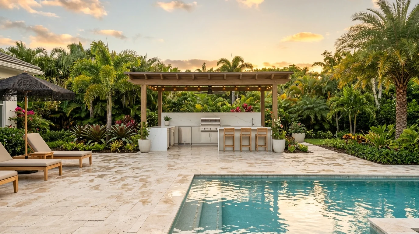 Outdoor kitchen ideas for South Florida homes look different than what you'll see in national design magazines. In Palm Beach County, we cook outside year-round. The climate makes it practical in a way that just isn't true in most of the country. Done right, an outdoor kitchen becomes one of the most-used spaces in your home, not a seasonal feature you break out three times a summer.